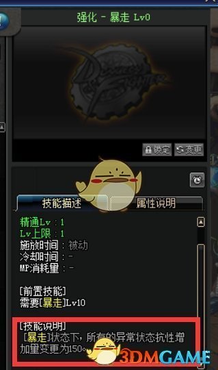 大血气技能由于sp点数受限以及考虑到cd的问题没办法点满,不过在上次改版后这个技能还是提高了不少伤害,可以作为BOSS的起手技能释放来缩短技能cd。