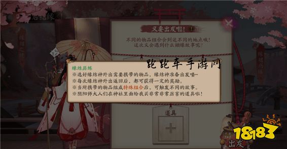 阴阳师缘结历练搭配推荐是最新与君结缘活动玩法,玩家们需要帮助缘结神选好食物、御守和道具组合获取8个风铃喔,那么阴阳师缘结历练搭配什么道具好、阴阳师缘结历练组合选择推荐呢,跑跑车手游网为大家带来介绍吧。