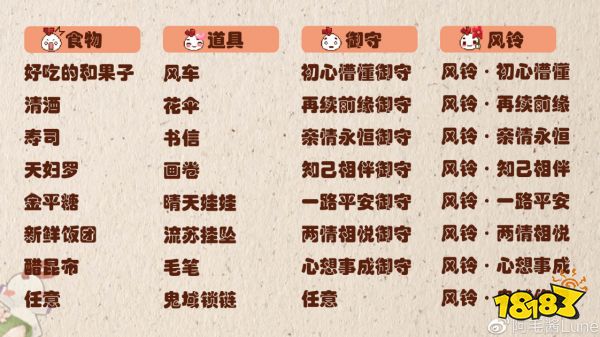 「缘结历练风铃墙」道具特殊组合列表一览,共有八段剧情等待触发!