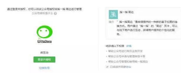 ➀商户和开发者可以在摇一摇周边平台申请授权,PC端登录摇一摇周边