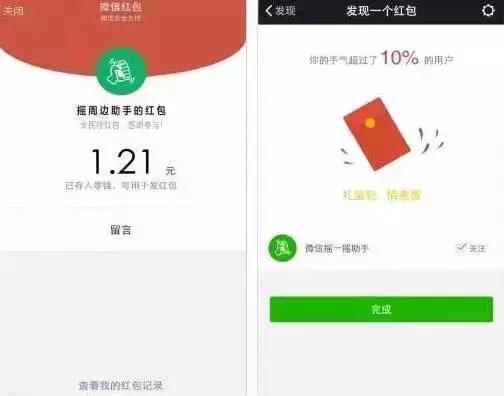 首先,“摇周边红包”是通过微信摇红包+关注功能来实现的。