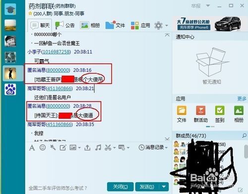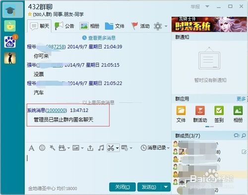 关闭匿名功能后,系统会自动向群中发放消息,如下