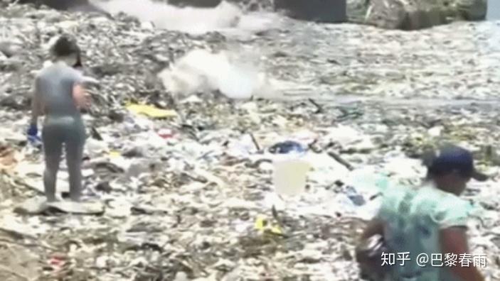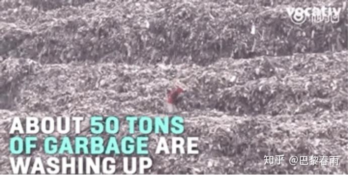 垃圾被冲向大海,强降雨或者风暴一经出现成千上万吨的垃圾便会将沙滩吞噬接着便会出现上面震撼的场景。