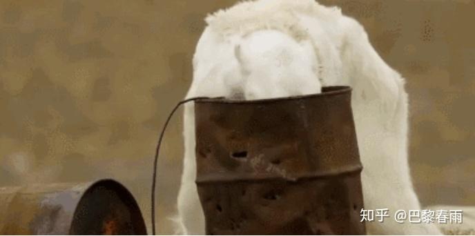 视频中小山似的垃圾场里几头白绒绒的生物在费力寻找着什么