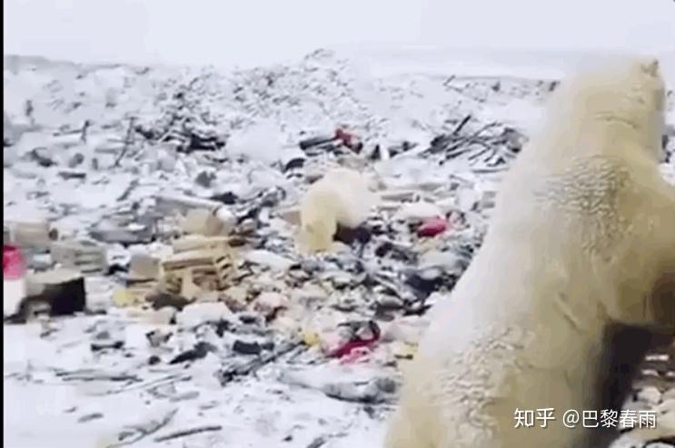它们绝望的一头埋进垃圾堆里无助的眼神,干巴巴的身躯,这还是我们印象里,那个憨态可掬的北极熊吗?