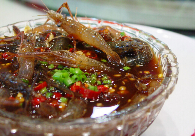 拿一个大碗,把那新鲜的小虾倒了进去,其实这碗里已经加了自制调料了。虾倒进调好的汁里以后,用另一个碗把这个装虾的碗盖住黑暗料理,还能够很清楚的听见碗里的声音,虾在挣扎。碗一个劲儿的响着,可以想像得出来,虾跳的多么厉害了。虾放到口中,感觉很香,肉质很嫩,同时虾在口中还动着。这种残忍的“美食”,外国人敢挑战?
