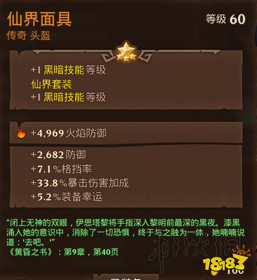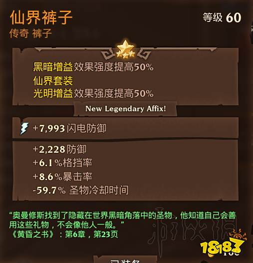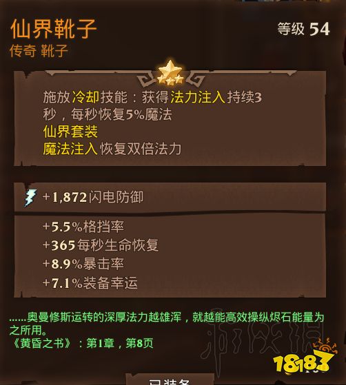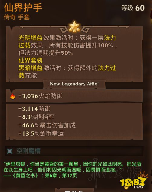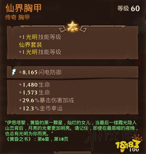 其他的正常使用仙界套即可,仙界套的肩膀有点废柴,可以视情况更换其他的。仙界套的靴子和手套是必备的,一个回蓝,一个加伤100%,头盔和衣服也替换不了,加2级光明和黑暗洗全技能等级: