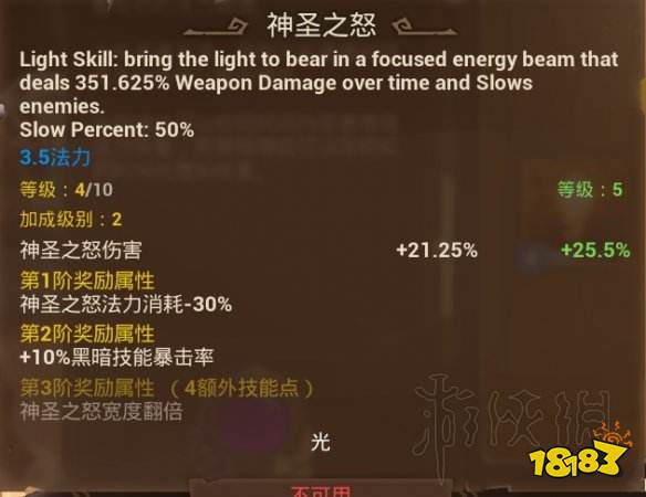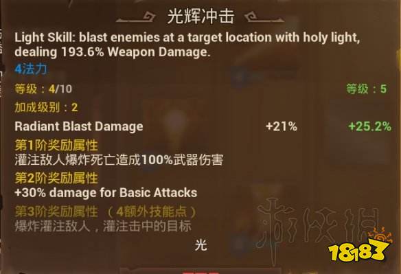 光辉冲击:4级,技能不使用,要30%基础伤。