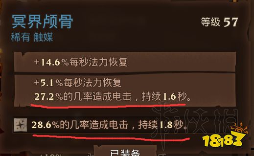 武器:因为玩的是圣物触发流,且圣物是电极,所以 武器最佳选择为单手,武器主属性伤害为电,无论什么武器,必须带百分比几率造成电击就,几率越高越高,(重点!)有洞更好,可以附魔电伤。下面是我目前的武器,不太好,但是很好用。