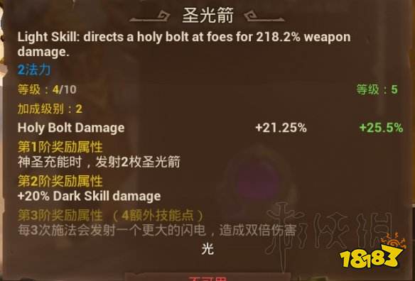 圣光箭4级,技能不使用,要的是6级属性黑暗技能加伤20%。