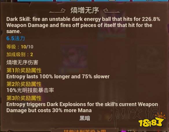 熵增无序10,总12级,主力技能,范围伤,持续触发。