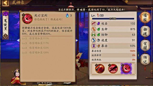 当然鬼使黑的加强并不只有这些,很多小伙伴都知道鬼使黑击杀一名敌方之后会获得额外的一个行动回合虽然大招还是消耗鬼火的,但是由于自己的伤害也是足够的基本上可能杀掉一个之后就直接能将对面团灭了。本次加强当中行动回合之外的时候还会获得一个新的技能,新的技能是一个单体双段的输出,每次造成攻击百分百的伤害。