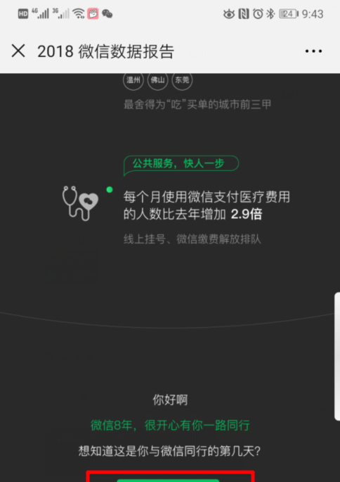 在报告的最后,可以看到自己微信的注册时长,我们点击图片最后绿色的选项。