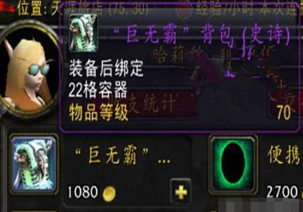 在魔兽世界中赚钱,也是一门学问。沙塔斯天涯旅店出售的巨无霸背包,装备后,会得到一个成就:我的背包是巨无霸。很多新人不知道,我就是买了这个背包后,将之放在拍卖行,用来赚取差价。魔兽世界在某次更新后,巨无霸背包只卖12金币。当时,许多玩家可谓一夜暴富。可惜,我没有赶上好时机。