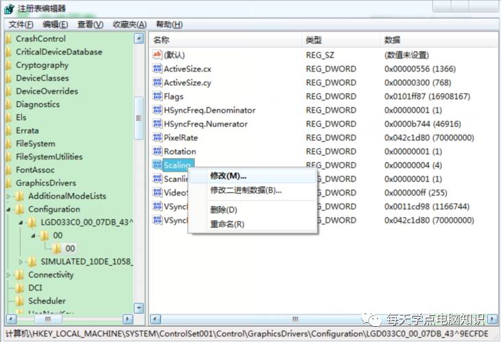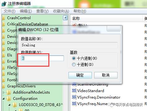 2、然后右键点击Configuration,选择查找,输入Scaling,在右框内即可看到scaling,右键scaling选择修改,将数值改为3即可笔记本cf怎么全屏,原值为4