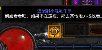 那么这buff有什么用呢?,实际上这是暗黑三周年的彩蛋,当你在地图上游荡时,可能会遇到一个名为牛王使者的紫名怪,当击败这个怪后会出现一个红色的门: