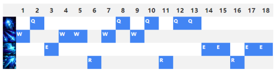 推荐寒冰射手艾希选择主W副Q的技能加点方式。E技能只是一个探照视野并没有伤害能力,而且冷却时间还非常的长,所以前期点一级就可以了。Q技能虽然可以说没有冷却时间但是需要叠加层数,而且Q技能一般只是打架的时候释放,对线消耗主要还是靠W技能,而且W技能还可以远程补兵点满冷却时间也比较短,所以选择主W副Q的技能加点方式。