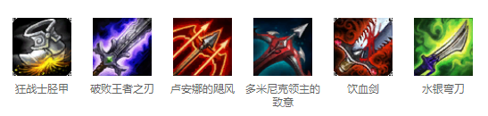 核心装备:第一件推荐出破败的王者之刃,破败可以让让寒冰射手普攻伤害更高,而且吸血能力让艾希对线发育或者打架都很不错,主动技能的减速配合本身的减速风筝能力也更强。第二件推荐出卢安娜的飓风,飓风的暴击可以加强寒冰的减速效果,不过最主要的是飓风的被动风怒的效果,配合寒冰射手的Q技能团战输出能力是非常强的。第三件推荐出饮血剑或者水银弯刀,如果敌人的控制能力比较弱自己的生存空间比较好就出饮血剑提升吸血能力,如果敌人的控制能力比较强就先出水银弯刀。