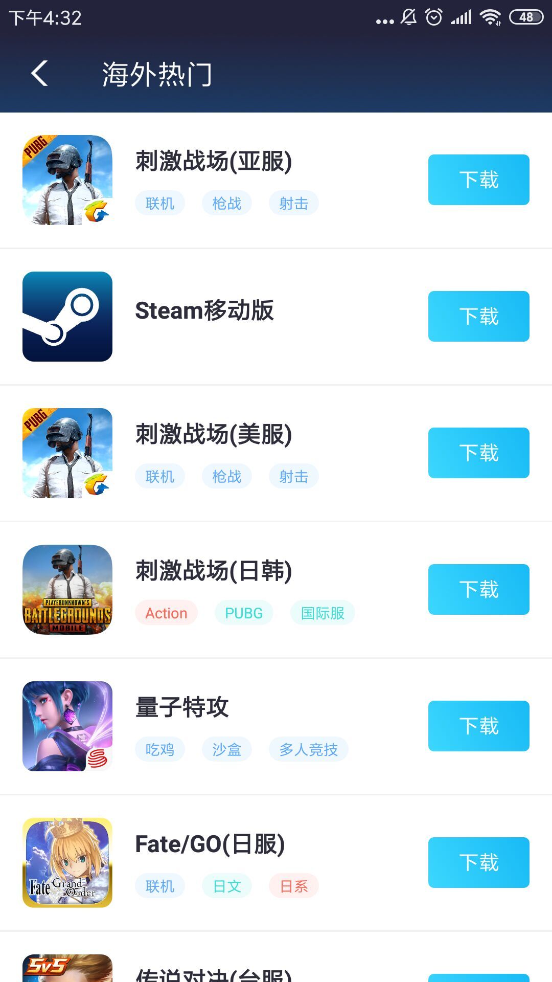2、按在软件直接去安装软件,这里你直接搜索就可以找到刺激战场的三个版本,直接选择亚服进行玩法攻略介绍。