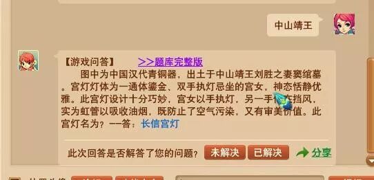 我们可以在问题里找个好打出来的关键字,比如一眼看到“中山靖王”是个词组也好打,然后ALT+V问精灵,看精灵的回答