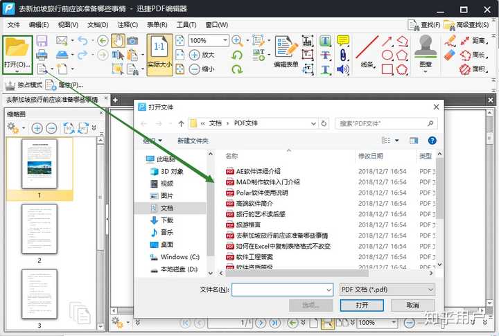 1:打开上面介绍的PDF编辑器,吧准备好的PDF文件添加进操作页面中,直接点击打开的按钮就可以在弹出的文件夹窗口里进行文件的选择。