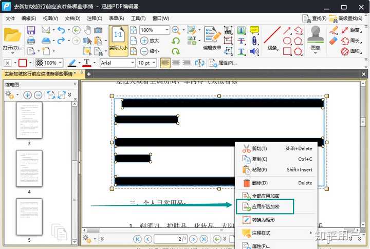 2:小编就以加密标记部分为例,点击这个功能选项会进入对应的操作页面,然后用鼠标去框选需要加密的重要内容,然后右键点击选中的文本内容,选中应用所选加密,这时候选择的内容就看不见啦;这样别人就没有办法盗取文件中的内容啦。