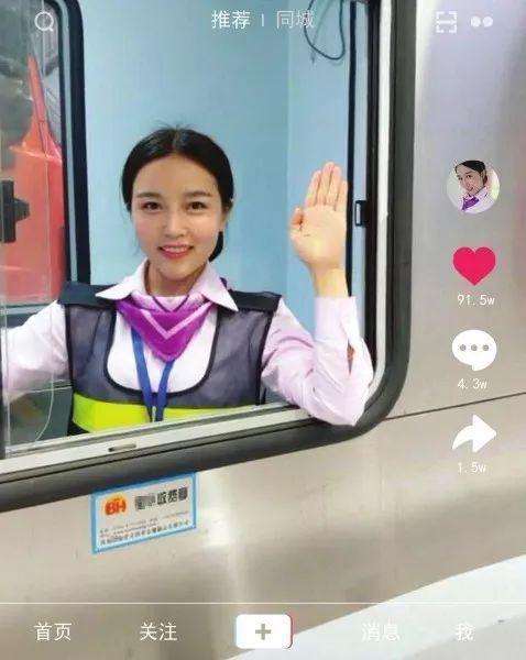 由于上班不能玩手机,一些工作视频其实都是同事帮忙拍的,有时她也会和同事一起出镜,给司乘人员送去节日祝福。