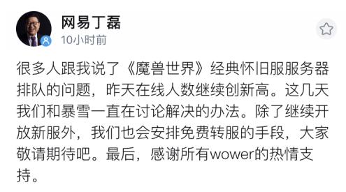 魔兽世界怀旧服开放以后热度爆炸,网易几次新增服务器魔兽世界 转服,依旧改变不了服务器满负载的状况,最近网易开放了免费转服,但从玩家口中得知,排队时间长的现象并没有太大改善,不及预期中理想。
