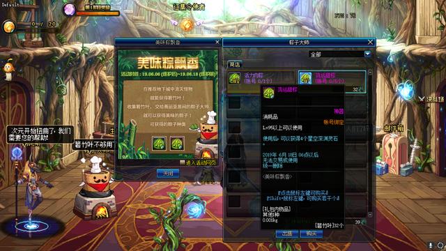活动一美味粽飘香,这一个活动的时间是6月6日到6月18日,活动玩法是刷推荐图获得材料箬竹叶,不过当天的获取上限是30张,所以大家刷到30张的时候不要问为什么不出货了~而兑换的奖励居然只有两种,一种是67张叶子兑换的活力肉粽,这一个奖励打开是67点的疲劳药,真是有趣呀~呵呵~一个账号只限兑换1次!