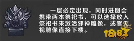 邪神雕像:进入迷宫时会初始携带一本奥斯迪加祭祀书和一本希拉克略祭祀书,两本书功能完全一致,但不共享献祭能力,可以一本战书一本法书。