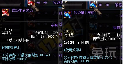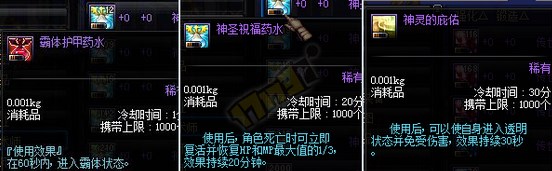 增加 HP/MP最大值(拍卖有售 价格便宜,持续时间半小时,回城不消失)