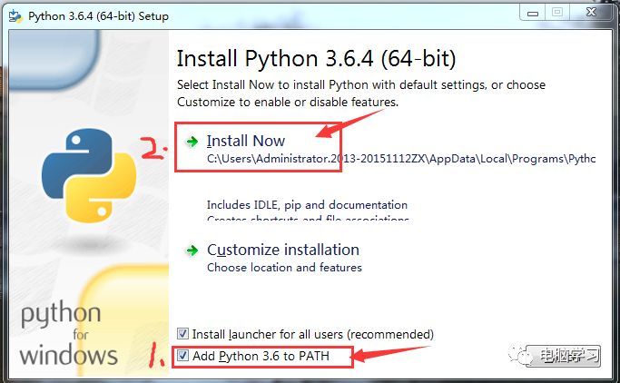 第二步:勾选下面的 Add Python 3.6 to PATH,然簊tall Now。如下图