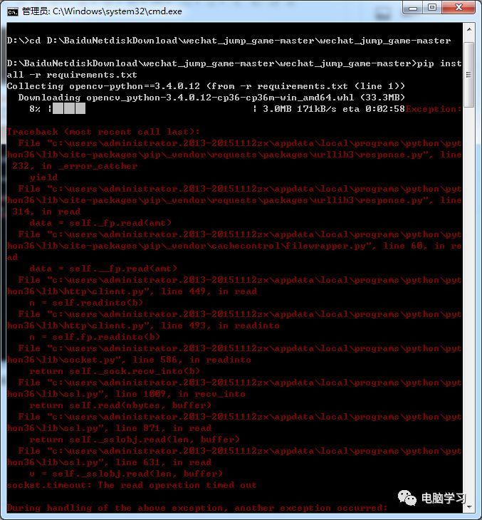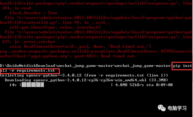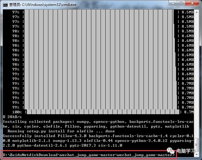 第十二步:如果中断了微信跳一跳攻略,你可以再次复制pip install -r requirements.txt 粘贴到含然旱并继续即可。