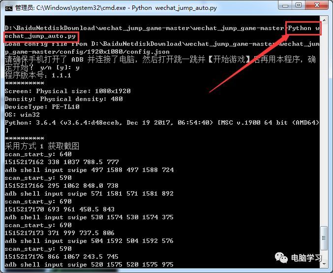 第十七步:复制Python wechat_jump_auto.py 粘贴到上面的路径的含然旱。翅示:请确保手机此ADB并连接了电脑,然邯跳一……y/n[y]:输入y回车即可。