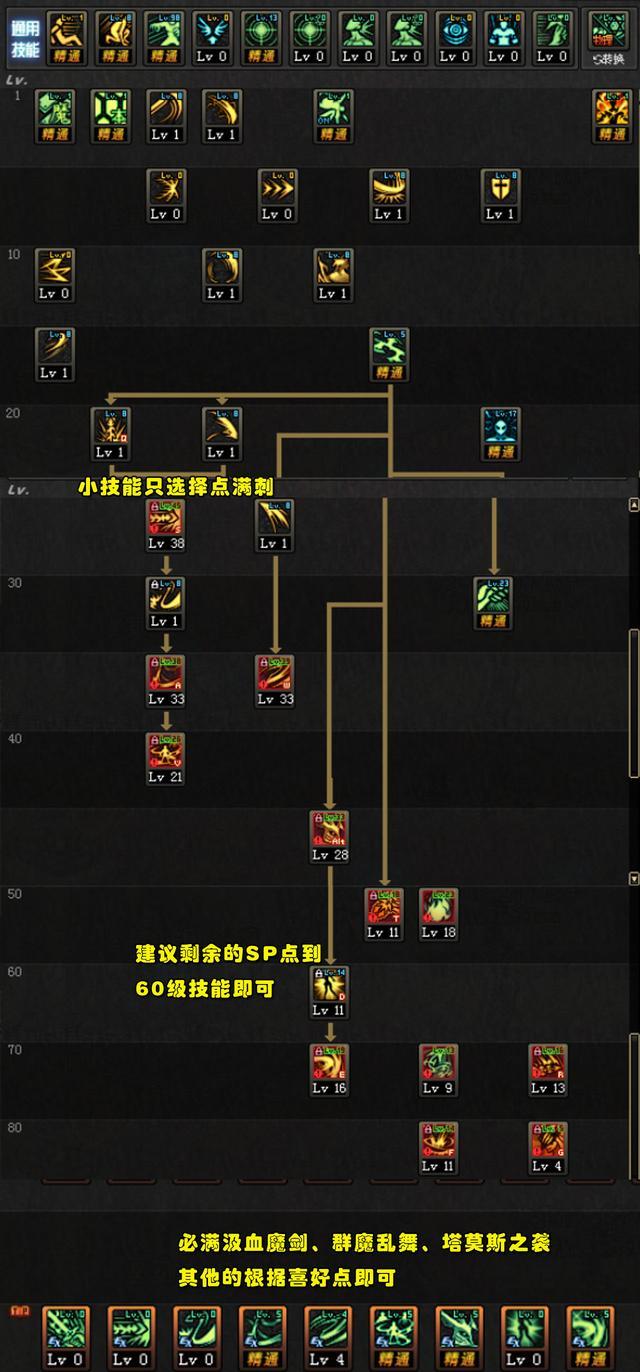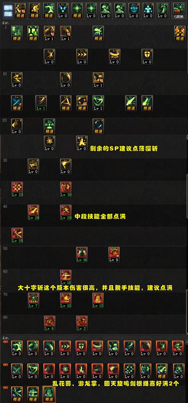 【争议技能分?级的“粗斩”在之前的版本里基本都是点1级棕使用,但是95版本全职业改版之衡杠伤害很高,并且可以在1秒之褐技能形态很好,所以基本上没有什么争议了,必满。