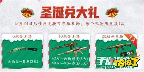活动的压轴大戏来了,积分足够的CFer,可以在12.24日之后兑换超级大礼。6积分可以兑换3天尼泊尔-翡翠,10积分可以兑换7天玫瑰精灵和M4赤龙,20积分可以兑换7天高爆手雷和永久AK12-圣诞!小编没有这把枪,所以很抱歉无法为大家展示它的局内效果。