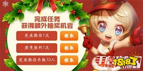 如果想要更多抽奖机会的话cf圣诞节活动,就要去完成3个小任务。任务内容分别是完成1局排位赛、团队胜利1次,和排位赛杀敌10次。相信这3个任务对各位神枪手来说就是小菜一碟cf圣诞节活动,毫无难度嘛!小编建议大家直接去打排位赛团队战,只要发挥得当,一局就能完成这3个任务,轻轻松松获得抽奖机会。