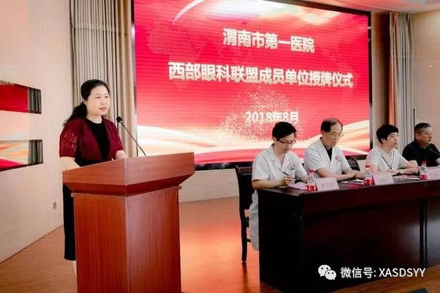 由西安市第四医院组建的“西部眼科联盟”现又添新成员——渭南市第一医院。8月24日上午,“西部眼科联盟成员单位”授牌仪式在渭南市第一医院会议室隆重举行。西安市第四医院副院长叶连红带领眼科专家喻磊等相关人员,临渭区卫计局领导及渭南市第一院医院领导班子、各科室主任等200余人出席了授牌仪式。