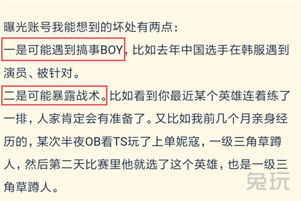 通常情况下选手在rank中集中练习某一英雄时那么就有很大的几率在随后的比赛中使用该英雄/该套路,所以就有粉丝担心暴漏选手的ID后会使战队遭到对手的针对。