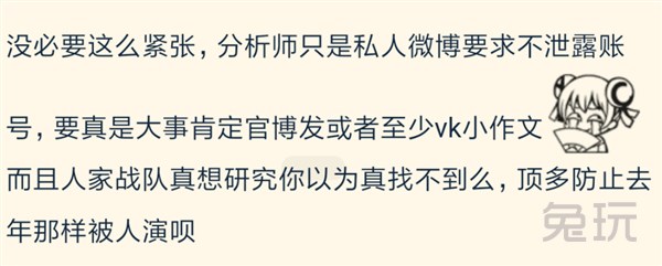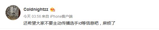 帖子发出去没多久iG的分析师就发微博称:“还希望大家不要主动传播选手id等信息吧,麻烦了”。