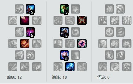 天赋选择12-18-0,凶猛系点出巫术增加技能伤害,盛宴增加线上恢复能力,先天资质增加攻击,双刃剑增加额外伤害,诡诈系点出漫游者增加移速,刺客和无情增加伤害,雷霆增加爆发,劫版本就是一个爆发型AD刺客,带上雷霆天赋让他伤害最大化。