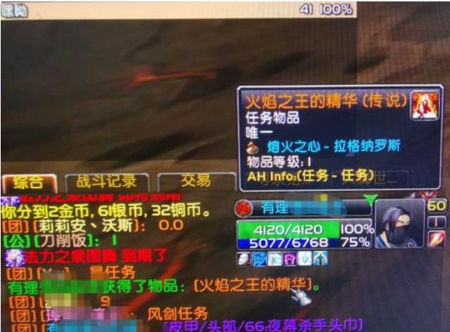 此外这位在铁站街的战士,他身上的风剑装备显示为没有职业限制,这是否说明法师术士等拿剑职业也可以装备该橙武呢?有人说接不到任务,但事实上拥有双风脸的法爷是可以接到任务的,而且还可以完成这个任务。现在怀旧服的风剑既然已经证实不需要职业限制,那么法师拿风剑就是可行的。这里说下,风脸有职业限制,但是风脸和叶子不一样不是任务的触发道具,已经有法师在怀旧服接到并完成任务拾取了火焰之王的精华。风脸的职业限制是使用限制,你不是战骑猎贼就无法使用,然而做风剑任务全程都不需要玩家使用风脸啊,是npc给玩家任务,不是风脸给任务。