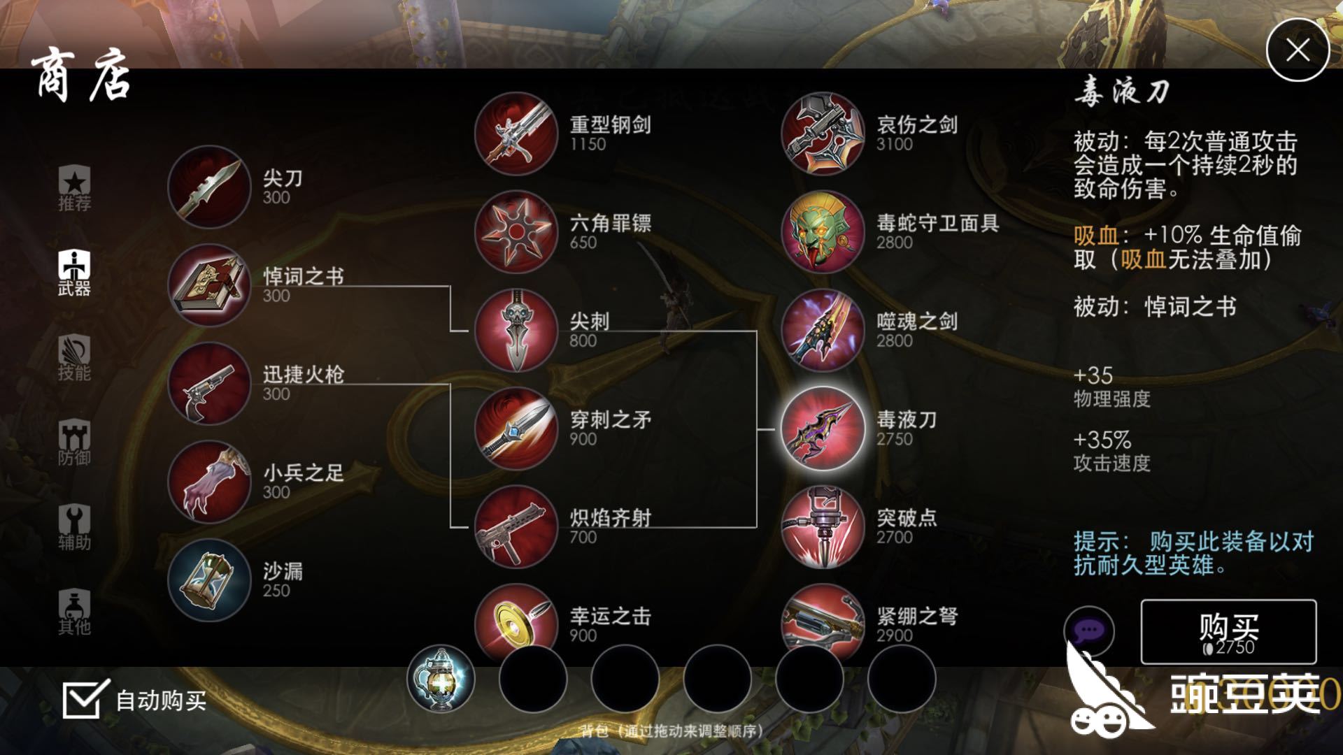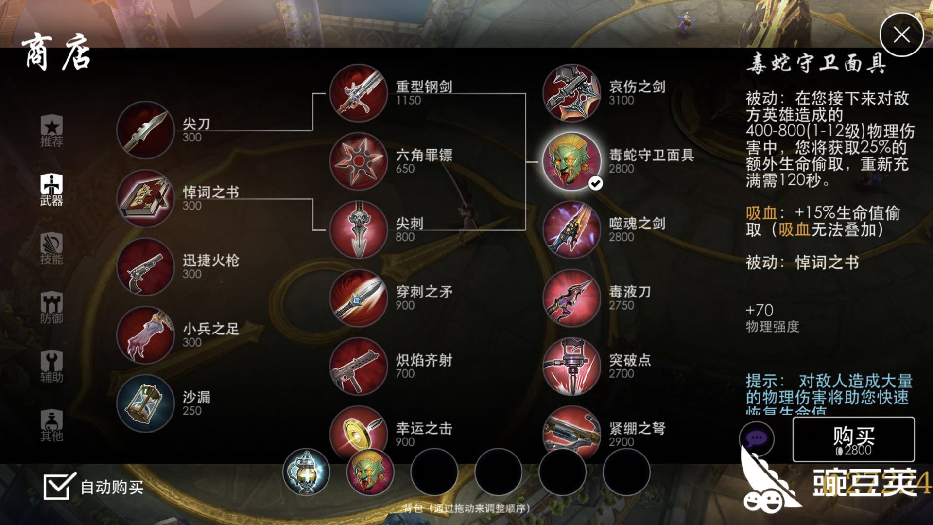第一是毒液刀,第二是面具。毒液刀专打坦克,另外面具的吸血效果不仅对对方造成高额伤害还加快自身血量恢复。