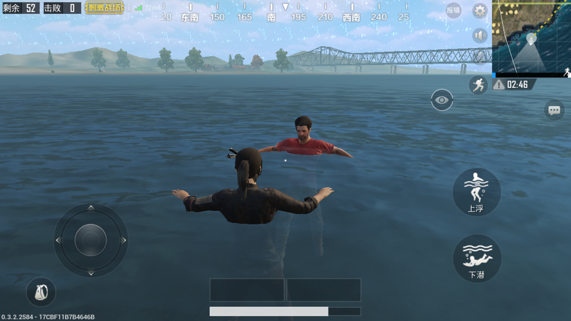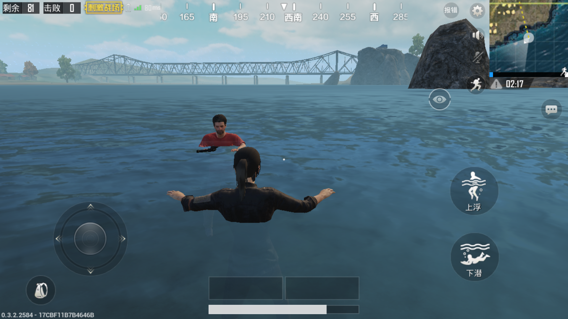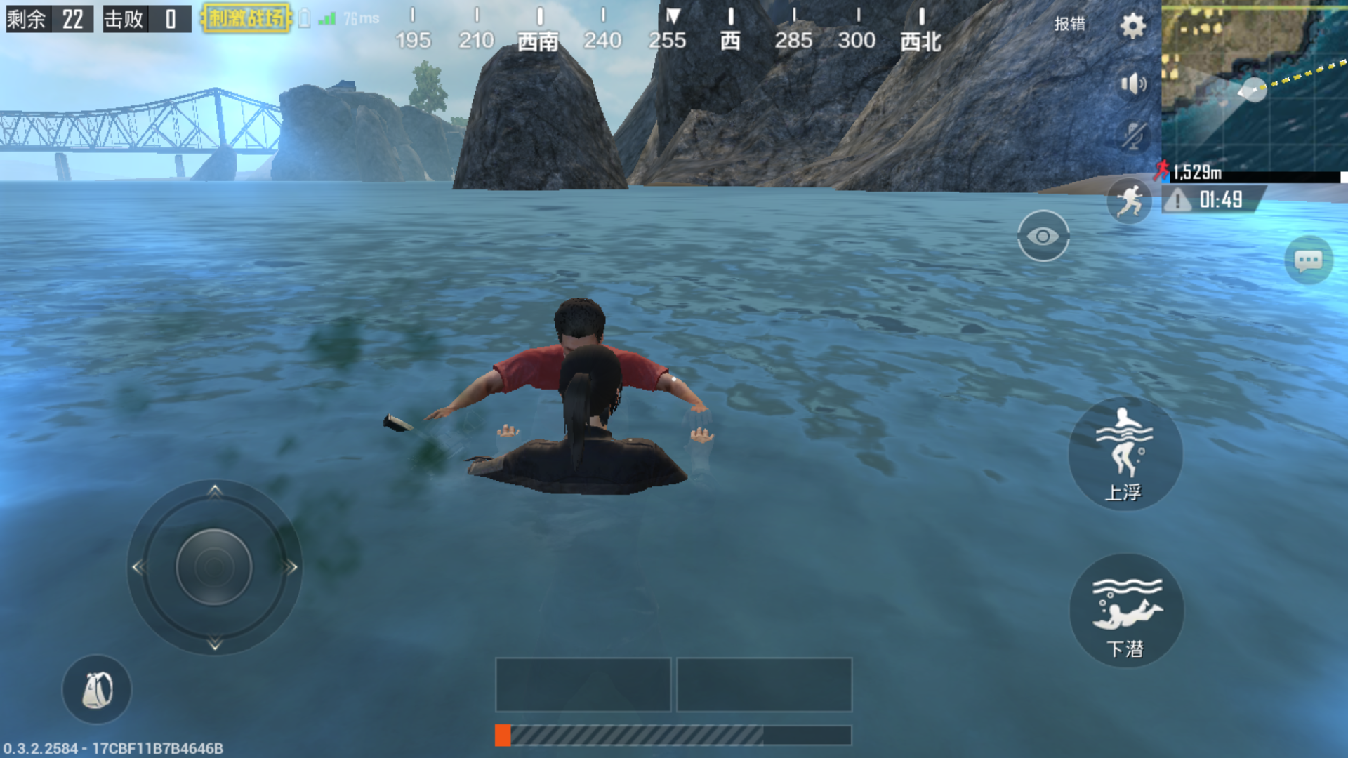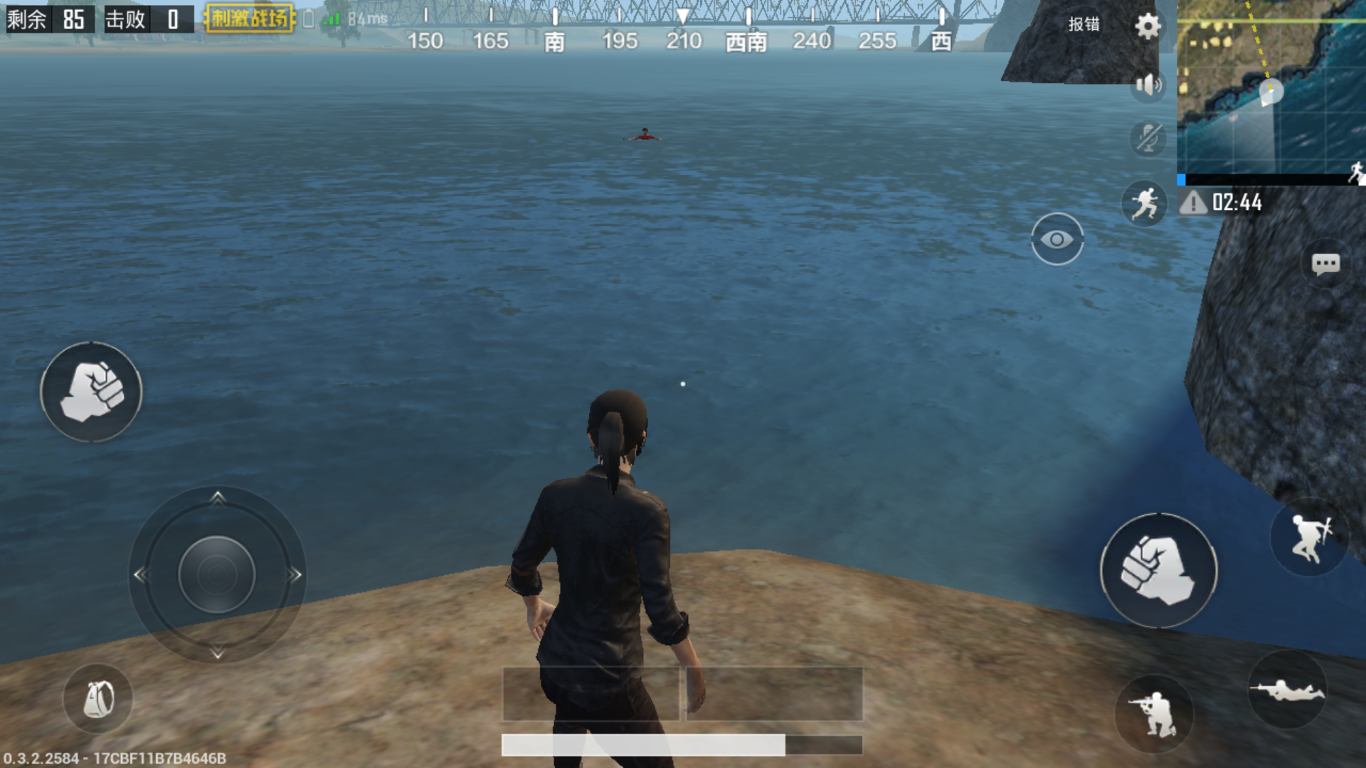 然后就爬……爬爬不上去了!于是沿着海走,想跑到大桥附近然后上岸,突然间!!!!水里面冒出了一个正在游泳的人!!!!妈也!我得打死他!wtf???我怎么没有枪!哇,这位大兄弟也是懵逼了???居然就在原地不动了?