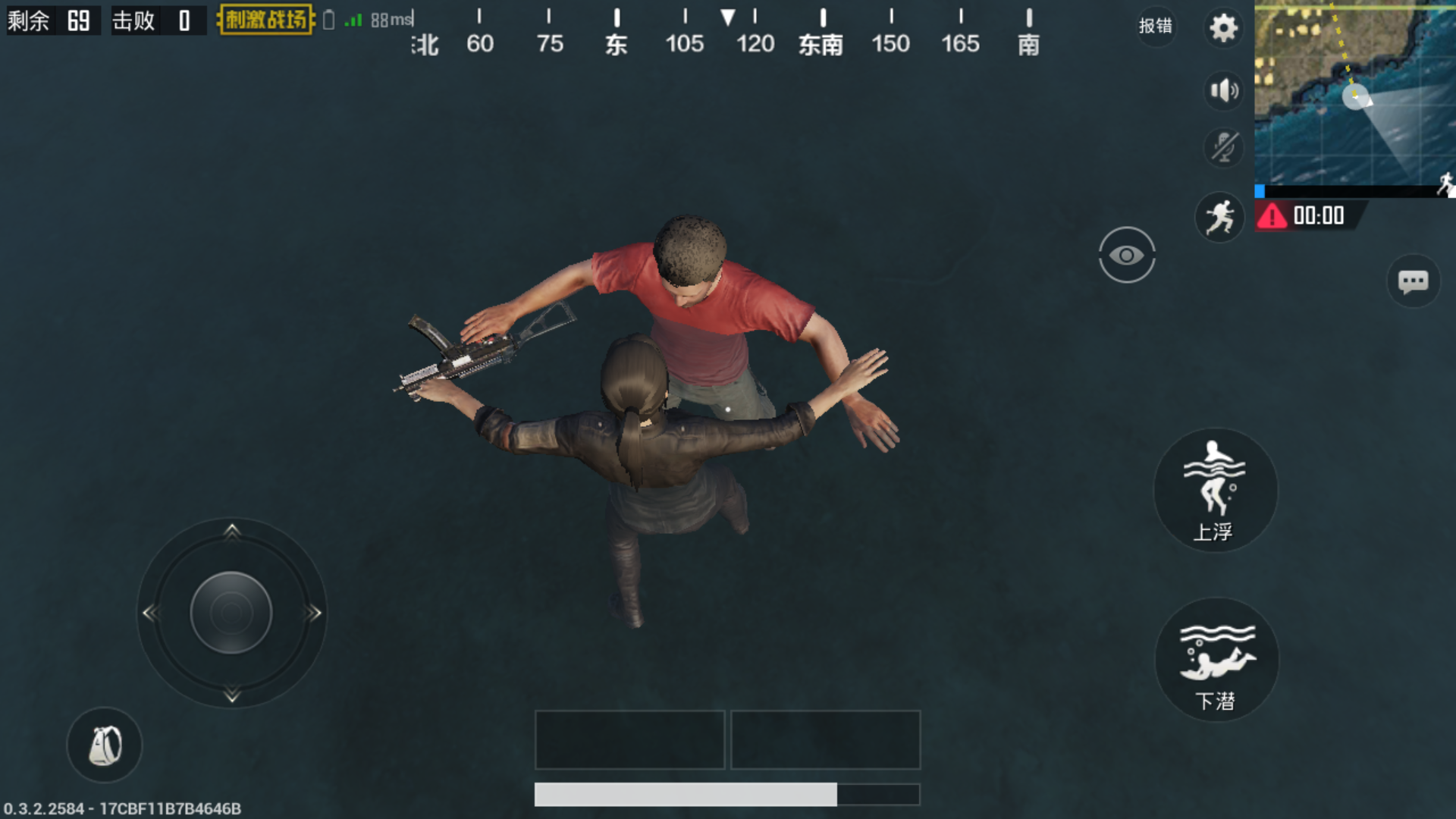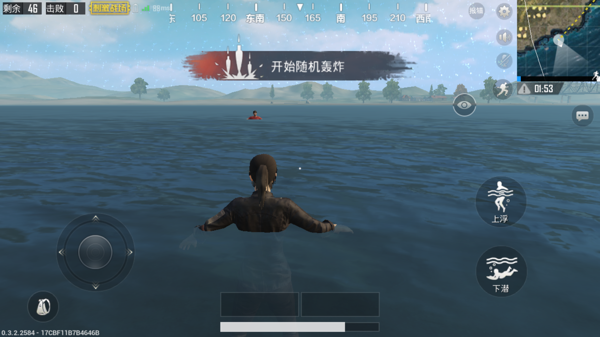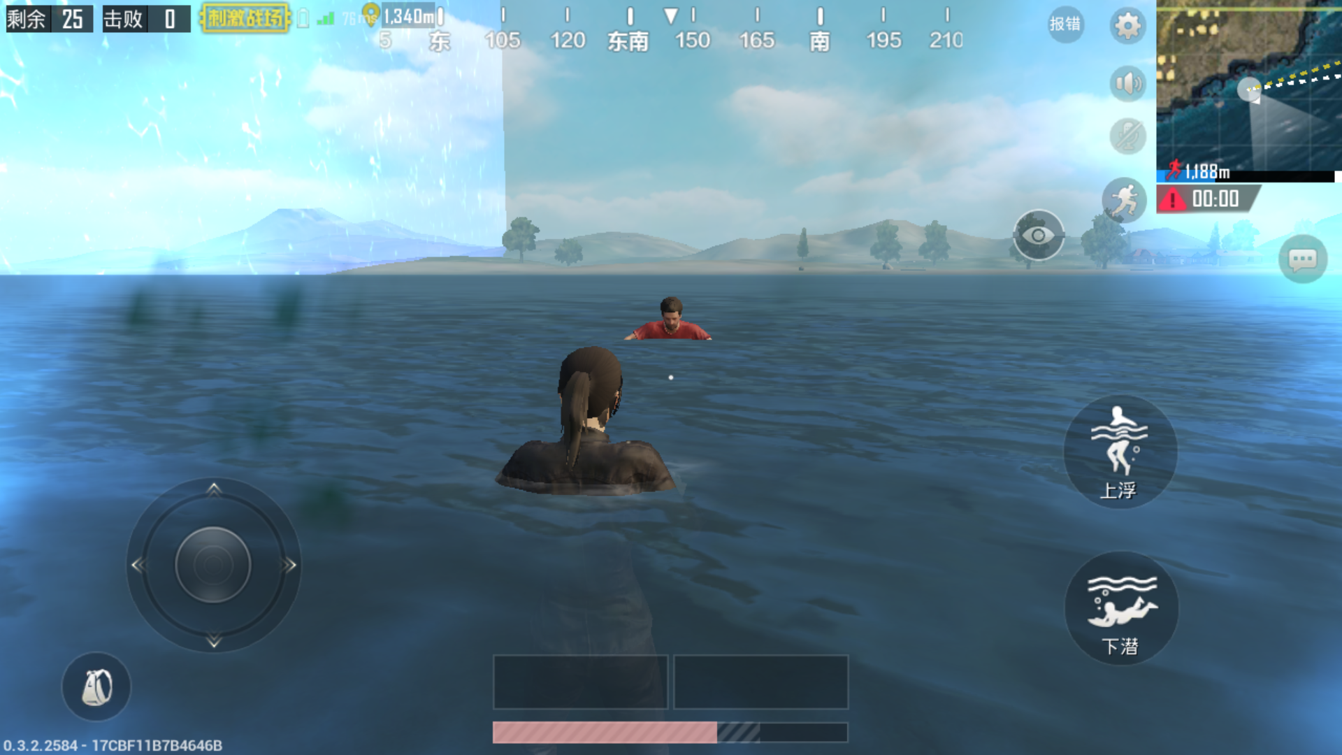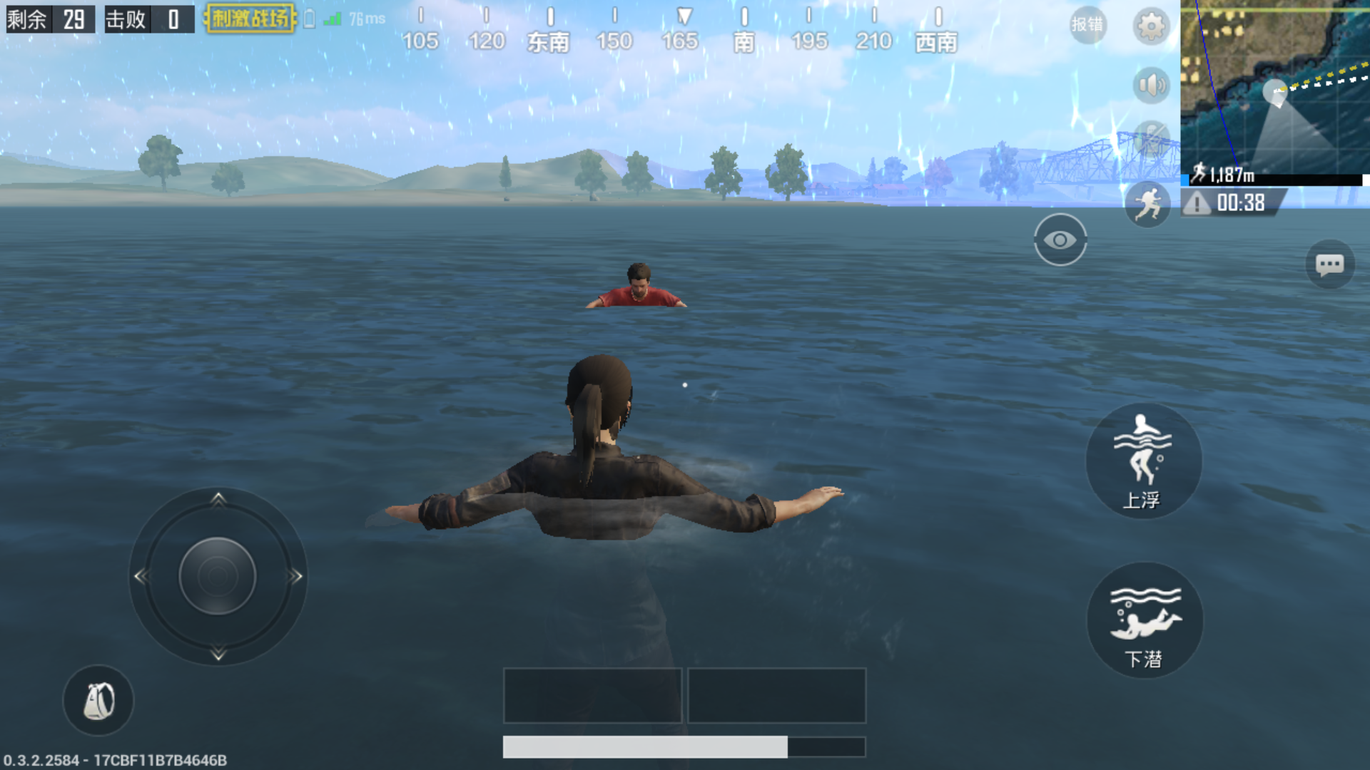 然后就爬……爬爬不上去了!于是沿着海走,想跑到大桥附近然后上岸,突然间!!!!水里面冒出了一个正在游泳的人!!!!妈也!我得打死他!wtf???我怎么没有枪!哇,这位大兄弟也是懵逼了???居然就在原地不动了?
