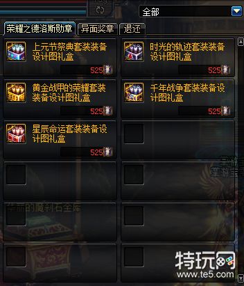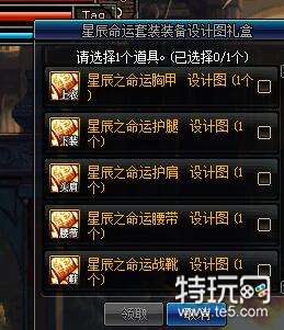 设计图礼盒可以开出对应套装五个部位装备的设计图dnf帝国竞技场,这个是自选的,这就看大家四等一少哪个了。