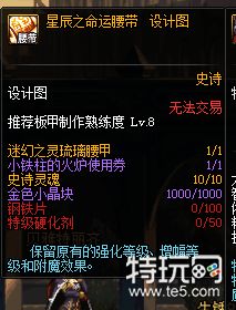 这个对应的史诗散件需要同样的甲类和部位,如图上需要制作星辰腰带,那么就需要准备一件对应的90级板甲散件腰带dnf帝国竞技场,迷幻之灵琉璃腰甲。所以大家现在开始刷深渊就需要好好注意了,散件看清楚在分解,别到时候千辛万苦把设计图弄出来却少了制作材料。