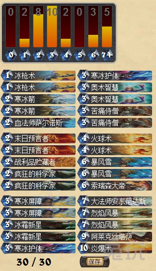可以将战利品掠夺者、一张暴风雪和一张烈焰风暴换成冰锥、工程师学徒、老司机和蓝龙王。