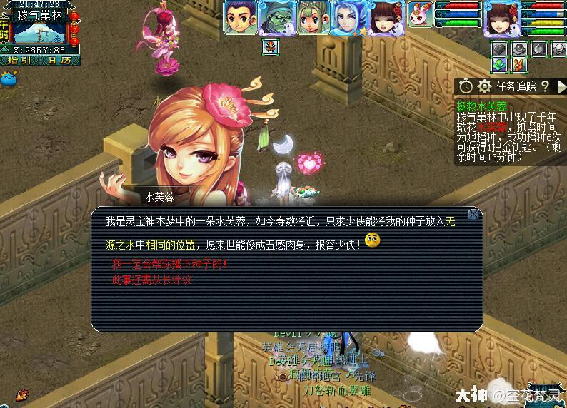 找完箱子之后,如果还有富余的时间,可以返回秽气巢林协助水芙蓉播种种子,点击他们领取种子后,和灵宝神木元神交谈去到无水之源,根据种子提示的坐标右键,会触发一场战斗,战斗很简单。战斗结束也有几率给银钥匙,播种6次可获得一把金钥匙。