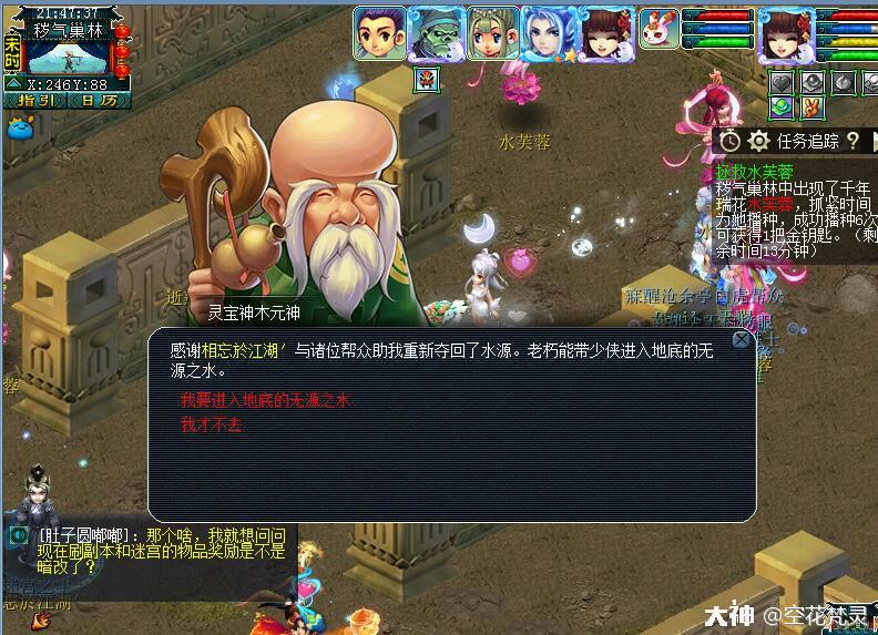 击杀完三才之后帮派迷宫,就该去无水之源击杀劳释道人了。他算是迷宫里的BOSS了。